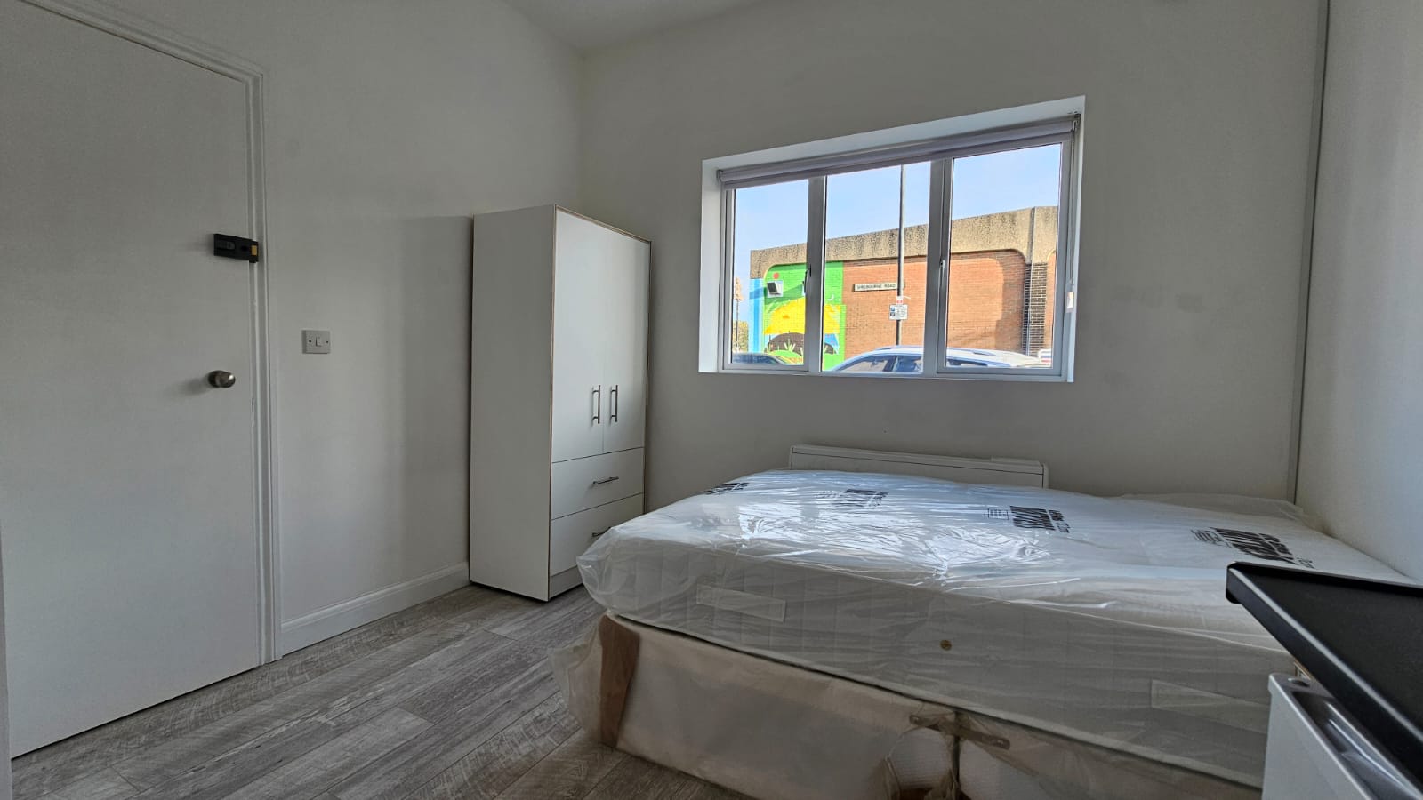 A self-contained studio flat located in the heart of Tottenham. The property offers a private bathroom and comes fully equipped with essential appliances, including a microwave, fridge-freezer, and countertop cooker.