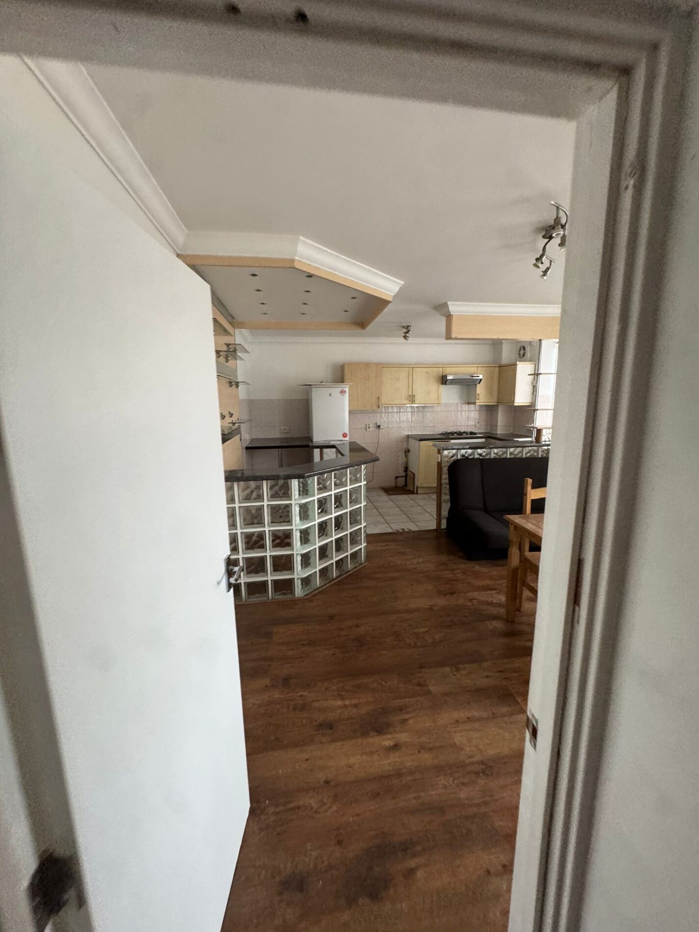 The flat features a generously sized bedroom with a large built-in wardrobe, providing ample storage space. The bright open-plan kitchen and living area create a welcoming atmosphere, perfect for relaxing or entertaining. The property also benefits from a private balcony, ideal for enjoying some fresh air.